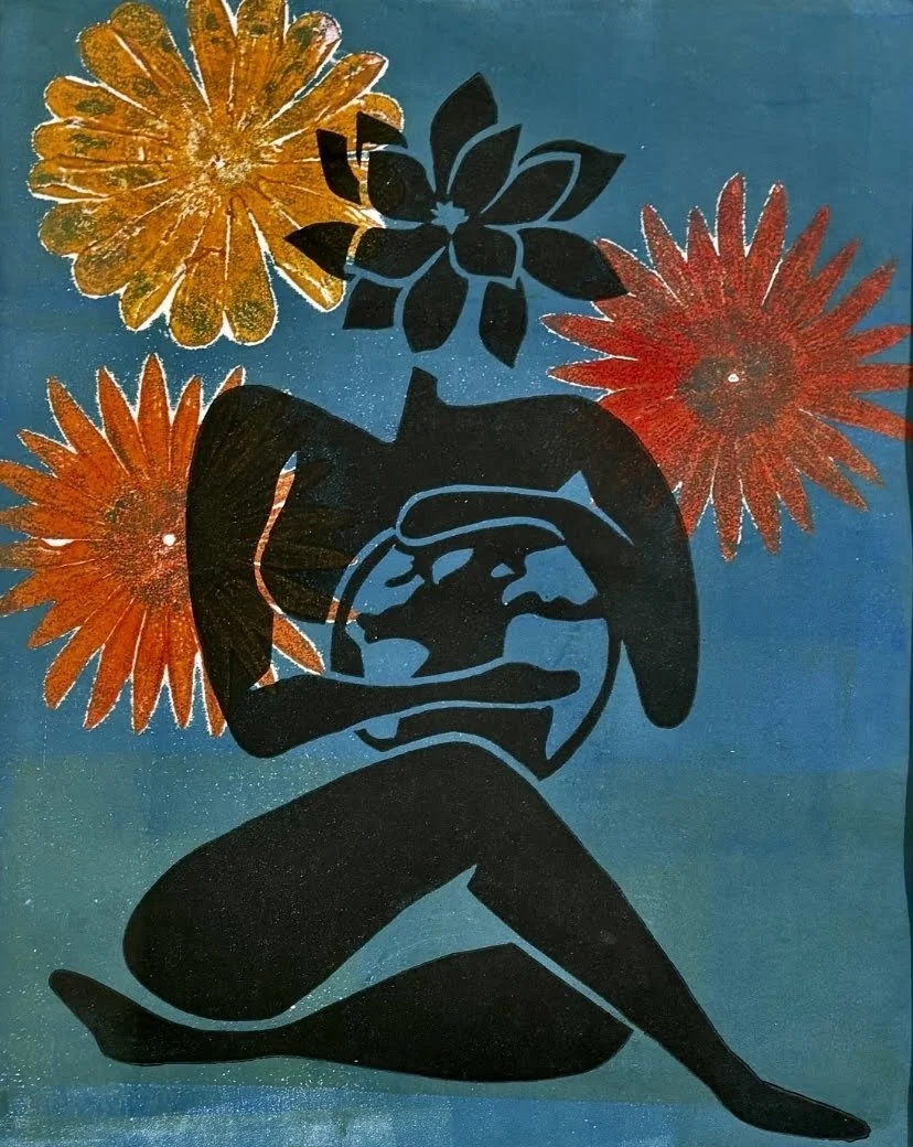 Flora's Embrace, 11 x 17 inches, Linocut on Paper, 2023